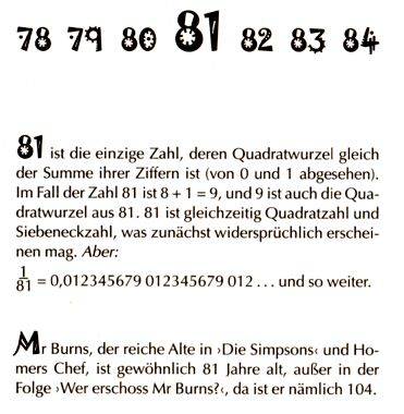 Schon allein an der 81 wird aber deutlich, dass die scheinbar stumpf hintereinander gereihten natürlichen Zahlen, also