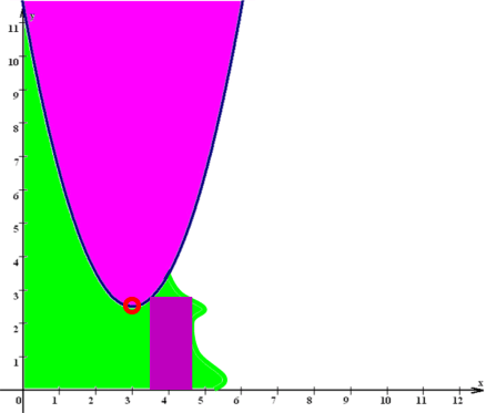 (... wobei aber wegen der Randproblematik der Scheitelpunkt der Parabel noch in der Glasscherbe liegen muss)