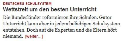 (um ausnahmsweise mal die "Zeit" zu zitieren, die ansonsten die Speerspitze des bildungspolitischen mainstreams ist; und auf die vermeintlichen "Experten" pfeife ich ja sowieso).