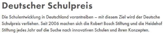 (Augenblick mal: die Robert Bosch Stiftung vergibt einen Preis an die Robert-Bosch-Gesamtschule?!)