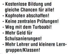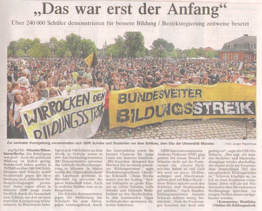 Am "Bildungsstreik" interessiert mich hier nur der schulische Teil, dessen Ziele lauten: