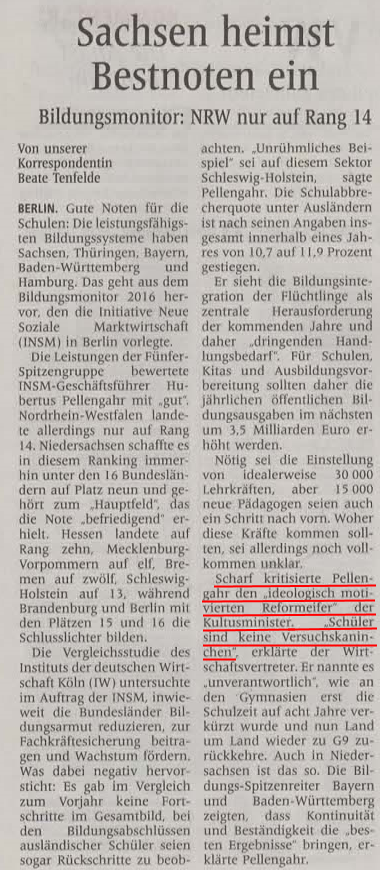 Fraglich in dem WN-Artikel scheint es mir aber, letztlich "den" Kultusministern die Schuld zu geben: