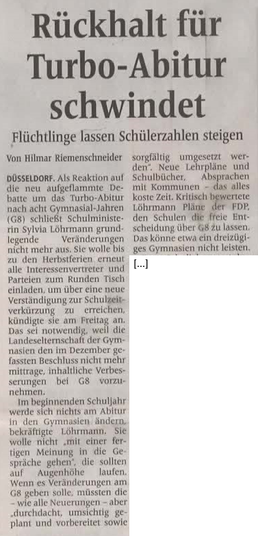 Zudem könnte man ja durchaus mal differenzierter über die allzu lange von offizieller Seite geleugneten Probleme mit G8 nachdenken: