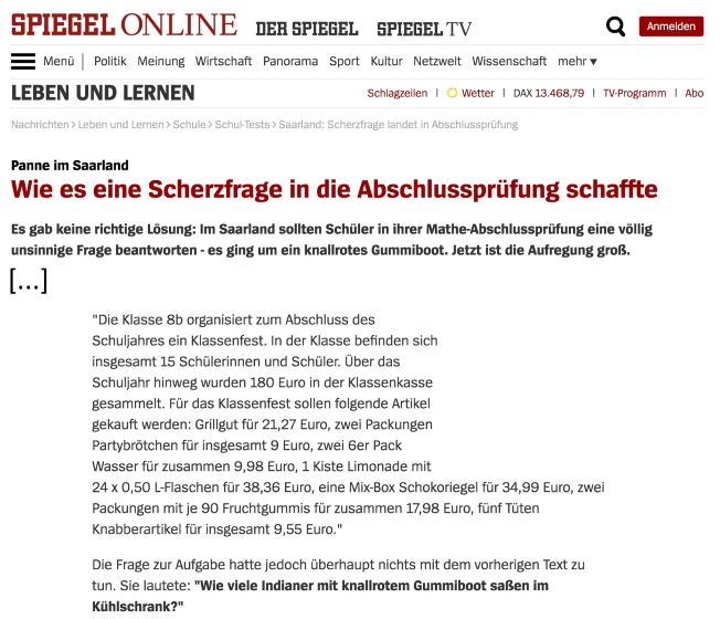 Und in der Tat läuft die Diskussion anscheinend rein äußerlich und völlig unpädagogisch, d.h. nicht über die Fraglichkeit der angeblichen "Objektivität" und der Aufgabenstellungen:
