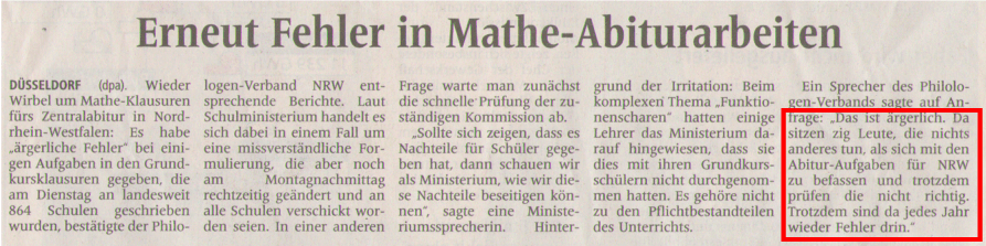 Wie schön, dass jetzt im ersten Zentralabitur tatsächlich solch ein Fehler aufgetreten ist: