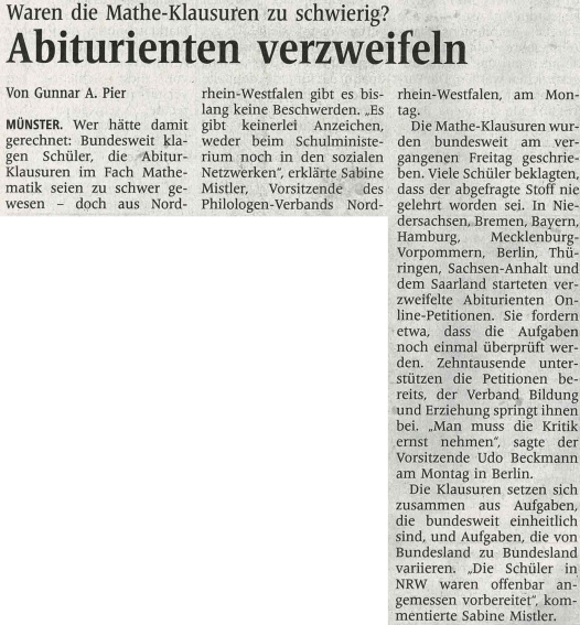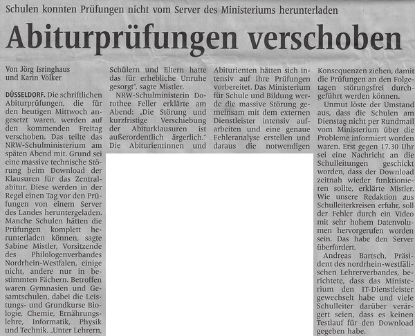 (nebenbei: es ist herzhaft egal, wie das Zentralabitur ausfällt, Hauptsache, es hat stattgefunden; bzw. am besten ist es, wenn es genauso ausfällt wie alle Nicht-Zentralabiture vorher auch, Hauptsache, es hat stattgefunden),