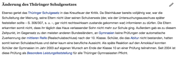 Dennoch zeigt der Fall des Robert Steinhäuser gut, in welche Not Schüler geraten können, die die Schule ohne jeden Abschluss verlassen müssen