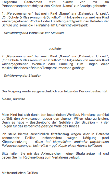 "Querdenken" angestiftet werden, Strafanzeige wegen Nötigung gegen Lehrer zu