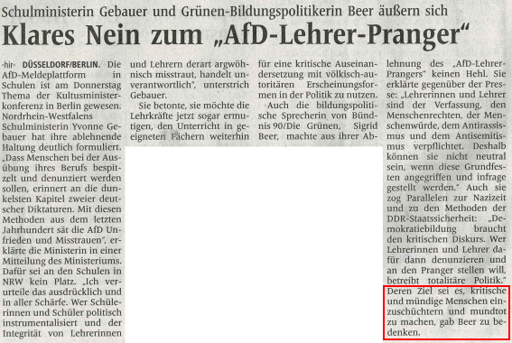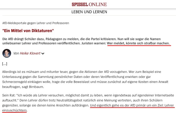 Nebenbei: wenn ein Lehrer durch die AfD denunziert wird, kann man das ja auch