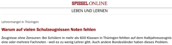 Es sei denn, der Lehrermangel ist (wie derzeit) beim besten Willen nicht mehr zu verbergen und führt zum angeblich Schlimmsten, nämlich - Gott bewahre! - Unterrichtsausfall
