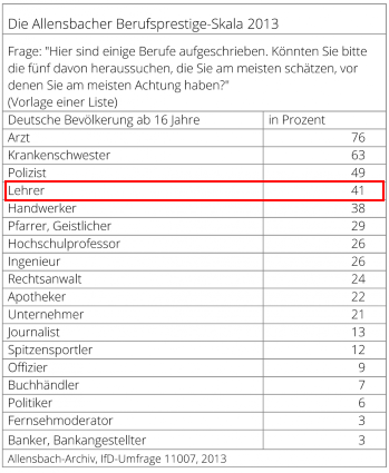 Fragt sich nur, weshalb der Lehrerberuf “trotz allem“ so gut angesehen ist: in meinem Bekanntenkreis laufen Diskussionen über den Lehrerberuf oftmals so ab: