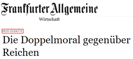 [weshalb meine Kritik an exorbitanten Managergehältern und Superreichen nun wahrhaft nicht (immer ein billiger Vorwurf:) durch Neid bedingt ist; vgl. etwa - natürlich in der reaktionären FAZ -: