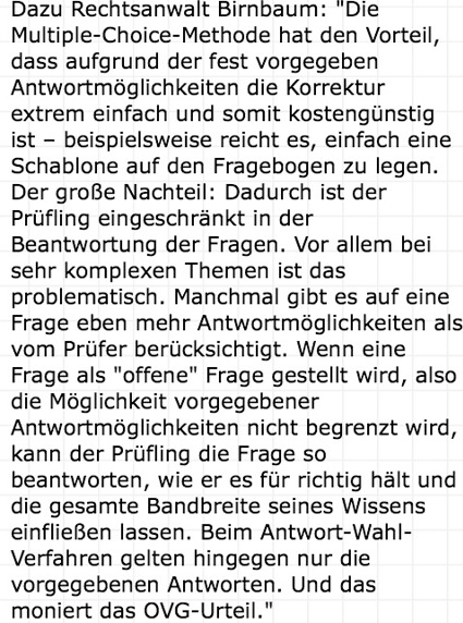 Inzwischen musste sogar schon einem Gericht gegen multiple choice einschreiten: