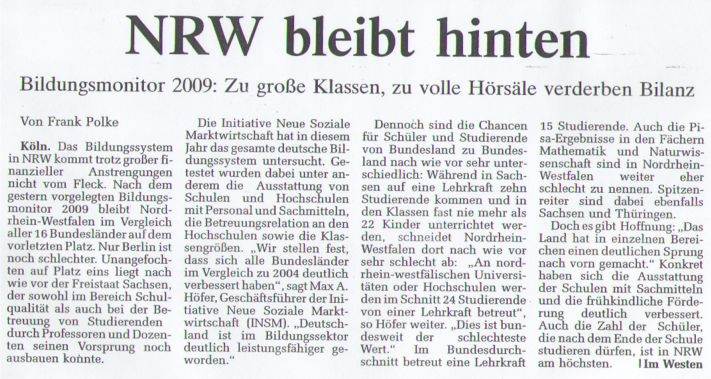 Nun (8/2009) ist also das "Bildungsbarometer" für 2009 mit den bereits grob im Zeitungsartikel oben gezeigten Ergebnissen erschienen: