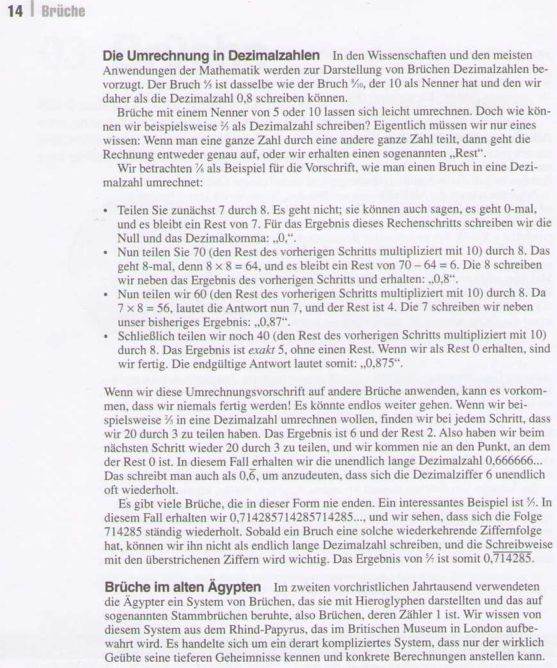 Fragt sich nur, was daran überhaupt interessant, also mitteilenswert, d.h. eines Referats würdig ist: doch sicherlich nicht die Darstellung, was Brüche überhaupt sind und wie die Bruchenrechenregeln funktionieren. Das weiß doch jedeR SchülerIn, das sind doch olle Kammellen