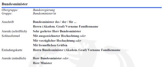Da ist die Person des Ministers erstmal unerheblich, d.h. man behandelt ihn mit besonderem Respekt, selbst wenn man die feiste Visage der das Amt innehabenden Person nicht erträgt oder einem ihre politische Ausrichtung (Parteizugehörigkeit) nicht gefällt: