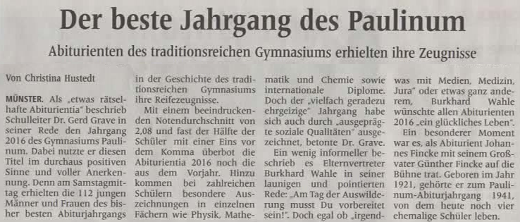 "In seinen schulischen Leistungen war dieser Jahrgang [2017] des Paulinum
