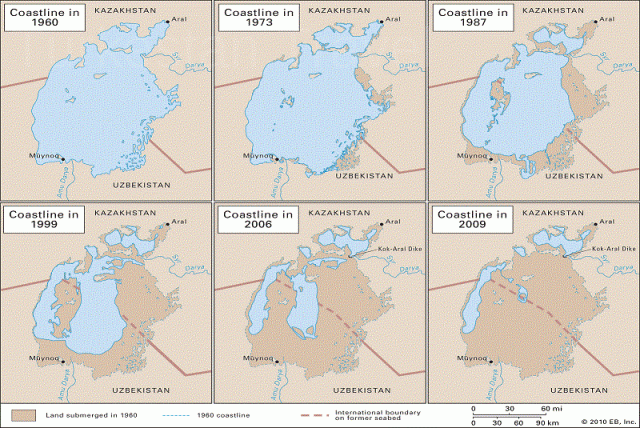 (Größe des Aral-Sees in den letzten 50 Jahren)