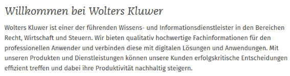 - mit „Wolters Kluwer Deutschland“ (s.u.) eine Firma nicht
