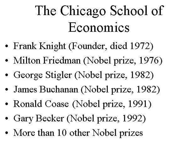 Die "Chicago School of Economics" ist wohl DIE Denkschmiede zur erneuten Einführung des Manchester-Kapitalismus, ihre Folgen erweisen sich immer mehr als gemeingefährlich.