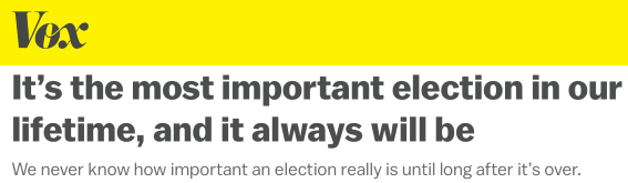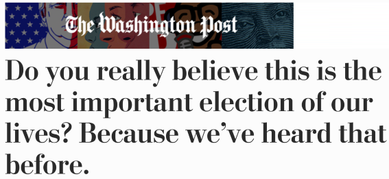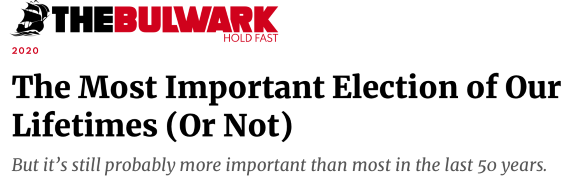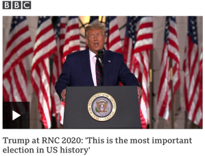 Die Behauptung, dass die US-Präsidentschaftswahl 2020 „the most important election“ aller Zeiten / in der US-Geschichte / unserer Lebenszeit ist, bleibt in der Tat eine „political platitude“, wenn sie (die Behauptung) nicht dadurch begründet wird, weil ohne Trump alles (?) erheblich besser oder schlechter wird.