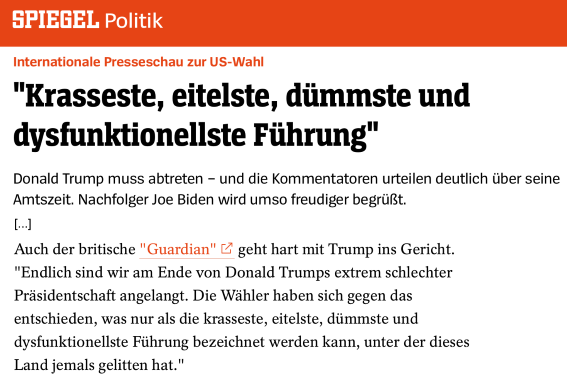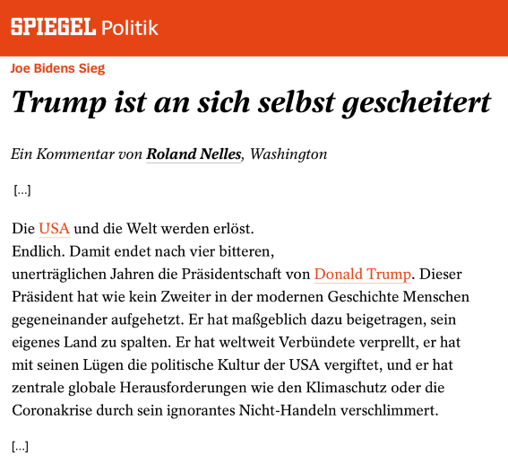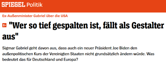 Was dabei allzu leicht vergessen wird: auch Biden wird ein amerikanischer Präsident sein, auch er wird also vor allem scheinbare oder tatsächliche amerikanische Interessen vertreten. Und das um so mehr,