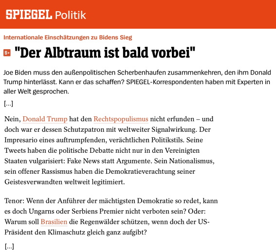 der "Trumpismus" ja auch Vorbild bzw. Ermutigung für europäische "Populisten" ist