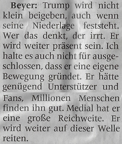 Aber es war und ist doch ein Riesenfehler, sich allzu sehr auf die Person Trump und seine persönlichen Macken zu konzentrieren