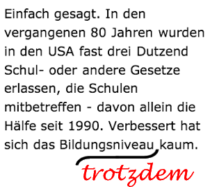 Ich bin seit Ewigkeiten auf vielen meiner Internetseiten gegen die seit Jahrzenten laufende Reformwut im Schulbereich zu Felde gezogen - und jetzt (2011) plötzlich sagen andere dasselbe: