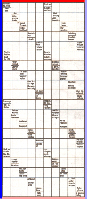 In einem Rätselheft stand folgendes "Endlos-Kreuzworträtsel":