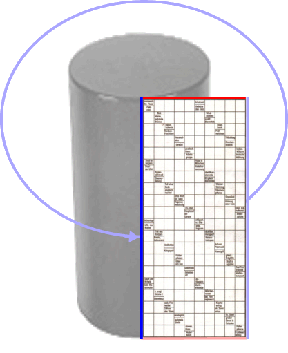 | Dieses Rätsel müssen Sie sich als waagerechten und senkrechten Zylinder vorstellen. Der rechte Rand setzt sich im linken Rand fort und der untere Rand geht oben weiter. Alle oberen Texte fragen nach dem waagerechten Wort und alle unteren nach dem senkrechten Wort. Daher erübrigen sich die Richtungspfeile. |