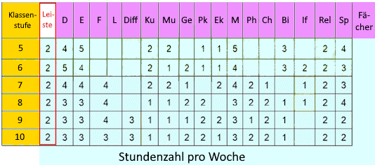 (so dass die Schüler in der 5. Klasse insgesamt 31 Schulstunden pro Woche haben).