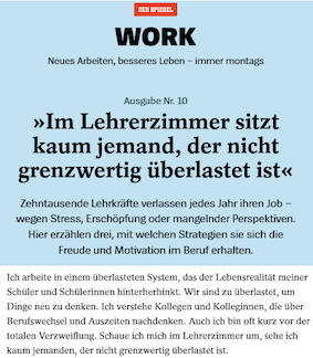 Insbesondere haben aber Lehrer ein Recht auf Stöhnen oder gar Verzweiflung, die z.B. an Brennpunktschulen die gesellschaftliche Suppe auslöffeln müssen / sollen, die anderswo angerichtet wurde.