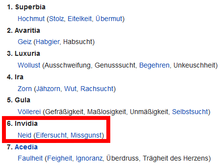 (Auch "von Neid zerfressen sein" ist keine "Sünde", sondern eine bittere Diagnose.)