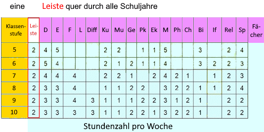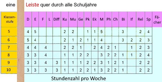 Die Einführung der Leiste kann also nur bedeuten, dass die klassischen Schulfächer etwas von ihrem Besitzstand (Schulstunden) abgeben.