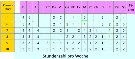 (so dass die Schüler in der 5. Klasse insgesamt 31 Schulstunden pro Woche haben).